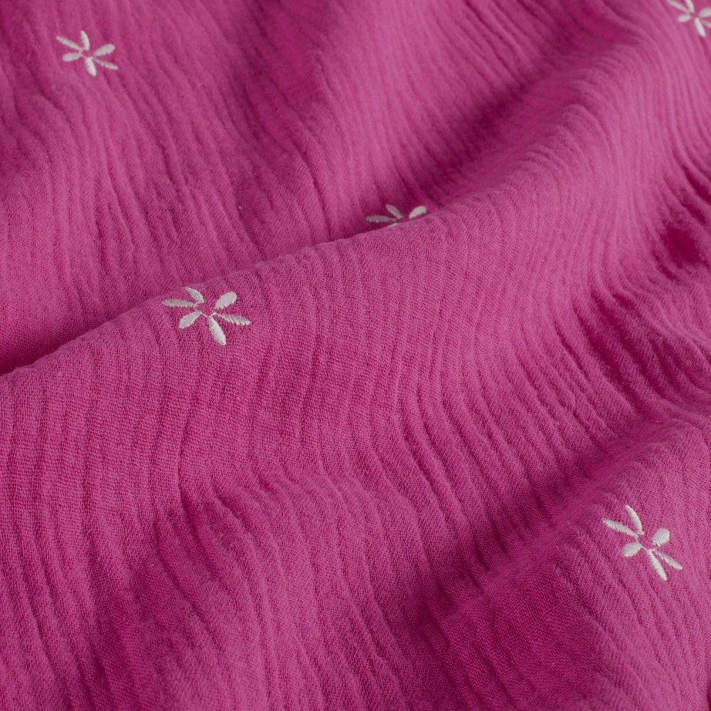 Dvojitá gázovina fuchsia Vyšívané květinky