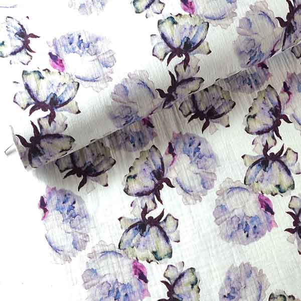 Dvojitá gázovina Motýlí květy fialovéSkladem 2 m159,00 Kč/ m131,40 Kč bez DPH