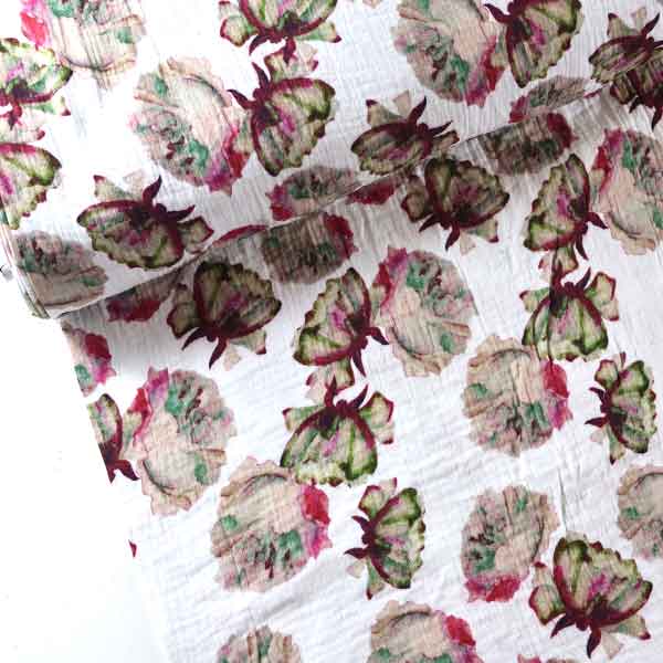 Dvojitá gázovina Motýlí květy vínovéSkladem 1.5 m159,00 Kč/ m131,40 Kč bez DPH