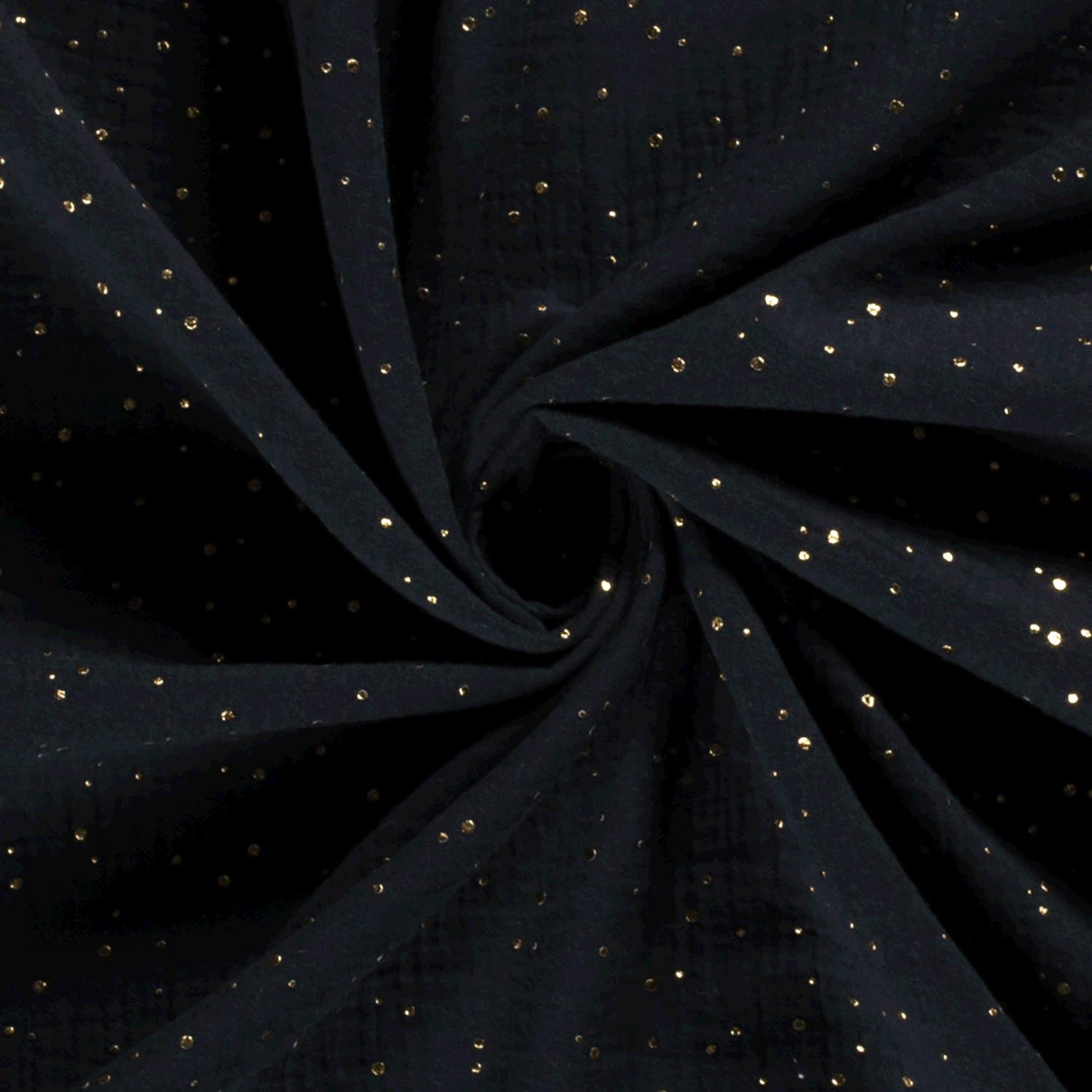 Dvojitá gázovina navy 3D zlaté puntíkySkladem > 5 m249,00 Kč/ m205,79 Kč bez DPH